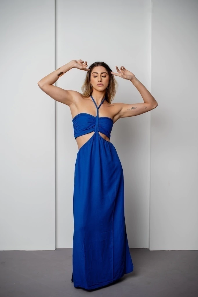 O Vestido Longo Ayra é a união perfeita entre frescor e sensualidade na medida certa. Seu design valoriza a silhueta com decote frente única, recortes laterais estratégicos e amarração delicada no pescoço, criando uma produção sofisticada para dias ensolarados ou noites tropicais.